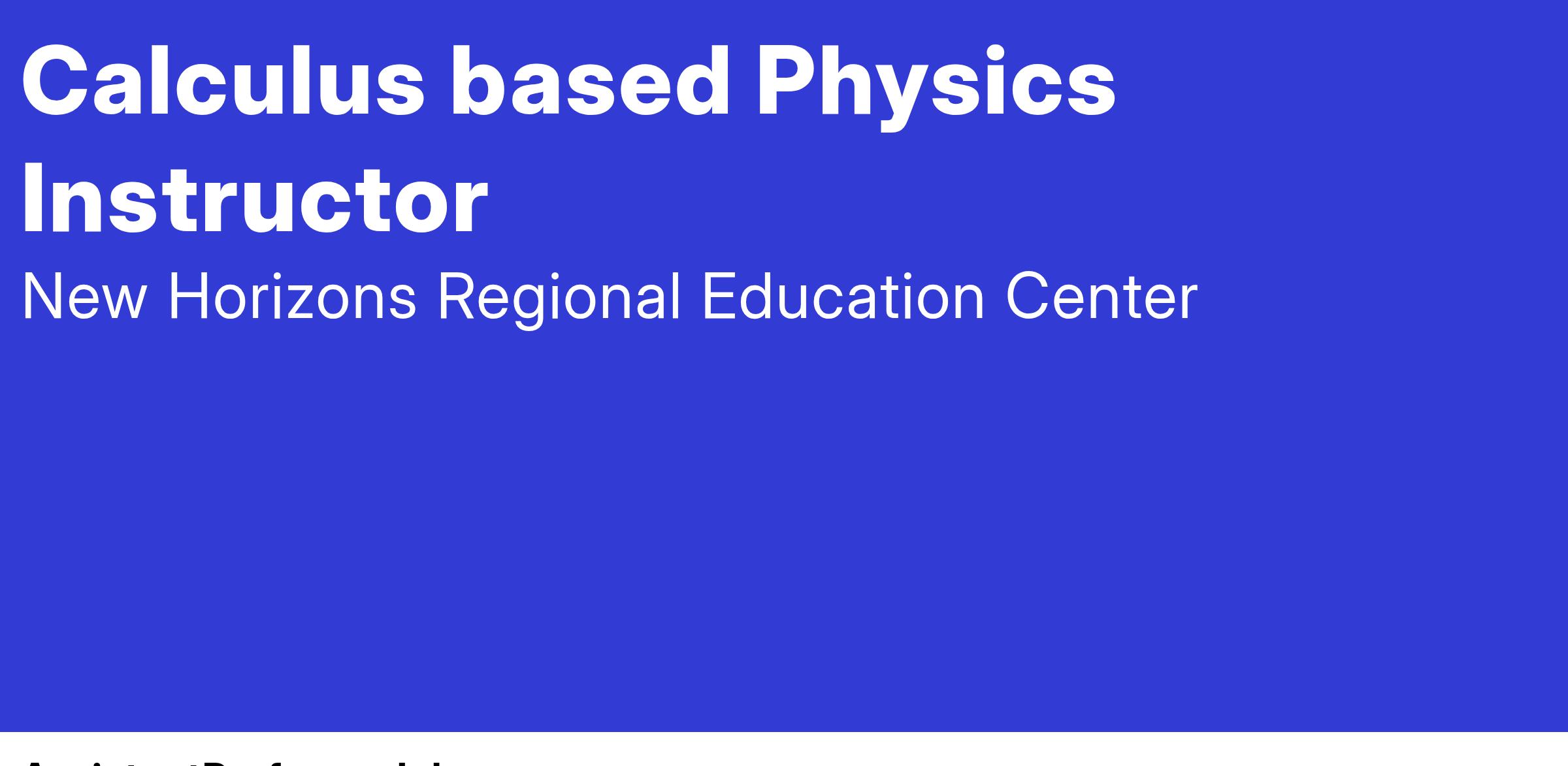 - Must possess a Master’s degree plus 18 graduate-level credits in physics, engineering, or a related field. Two years of teaching experience is preferred.