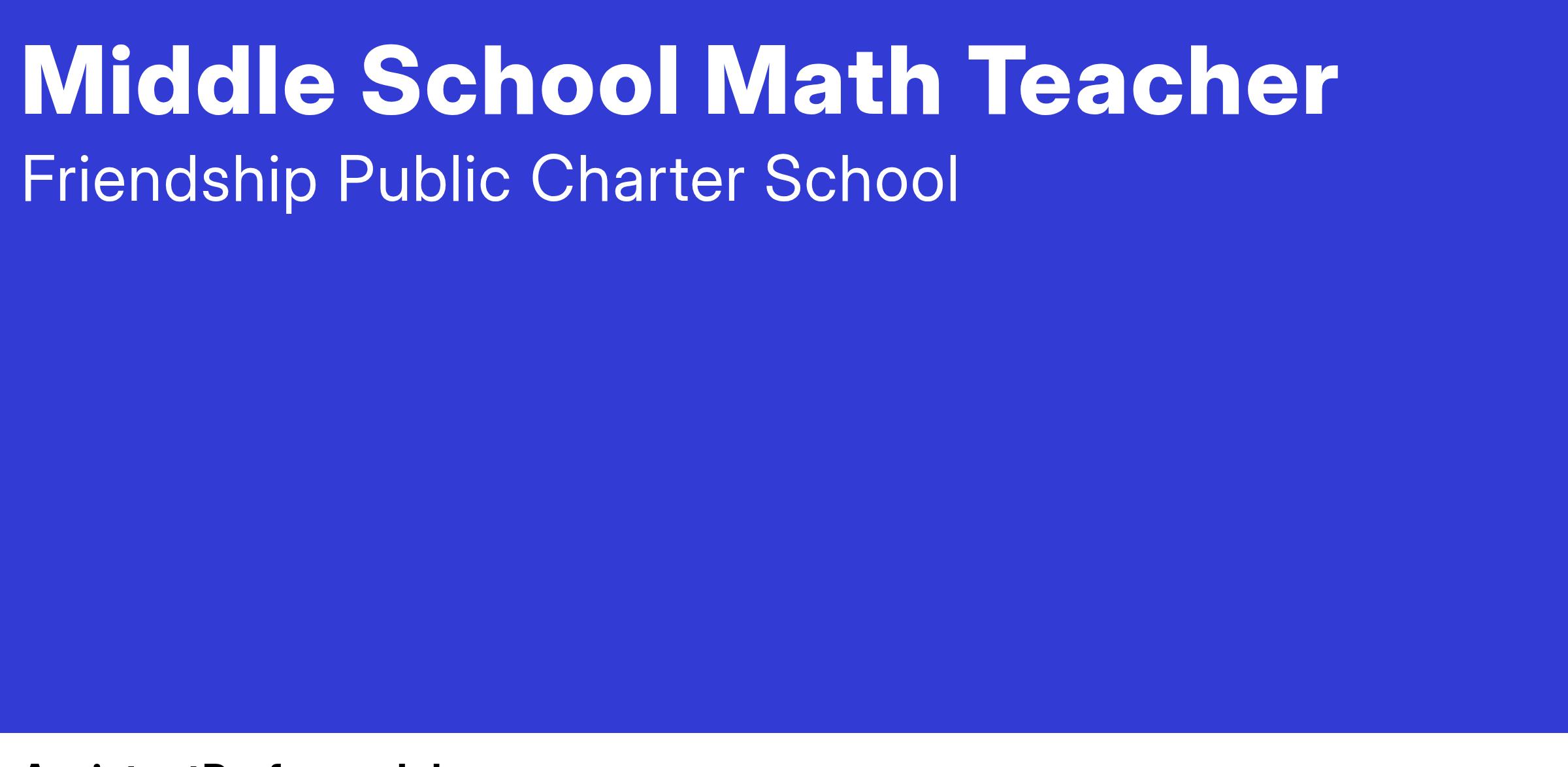 We are seeking professionals who are responsible, confident, respectful, caring, committed, persistent, and patient to join our community for the 2025-2026 school year, starting in August 2025. At Friendship, we believe that every child has the potential to reach and succeed in college—and we invite those who share this belief to apply.
