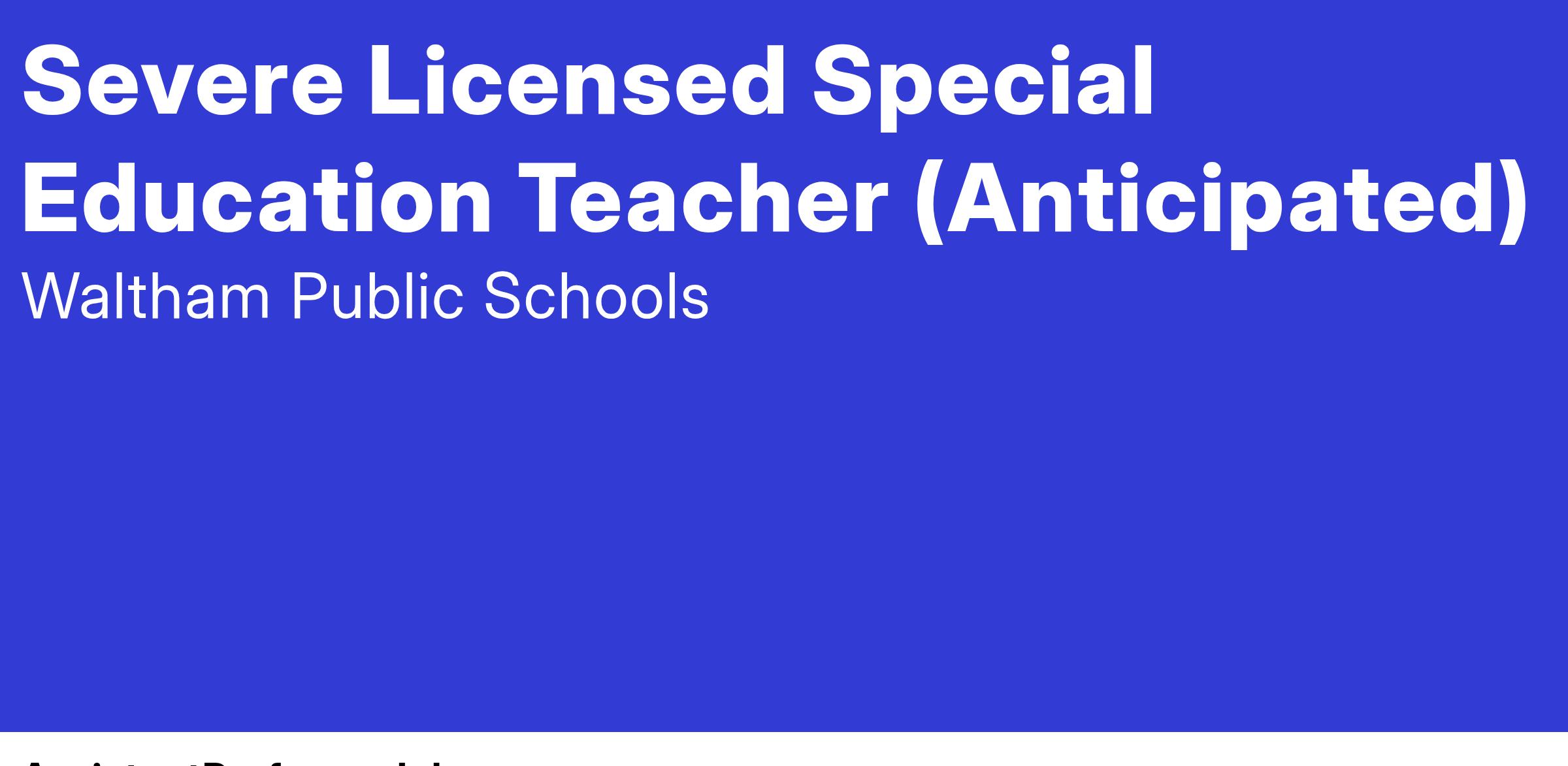 - Licensure from the Massachusetts Department of Education in Severe Disabilities, All Levels.